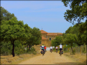 Dejaremos nuestra ciudad siguiendo la Ruta de la Plata al principio y por la cañada de Miranda después, abandonándola ya cerca de Morille, donde pararemos en busca de un bar abierto donde tomar una cañita. La búsqueda resultará infructuosa, aunque aprovecharemos para intentar solucionar algún problemilla que presenta la bici de uno de los compañeros.