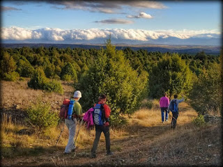 Caminados por ella unos 3 kms. y antes de llegar al pueblo, tomamos un sendero que, entre sabinas y enebros, nos irá bajando poco a poco hasta llegar al cruce con el camino de la mañana.