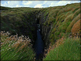 Cerca de ésta me asomo ya a los acantilados en una zona con mucho bullicio pajaril, pero no consigo ver claramente a ningún frailecillo... con las ganas que le tenía... Eso sí, fúlmares y gaviotas tridáctilas a mansalva... y también varios halcones.